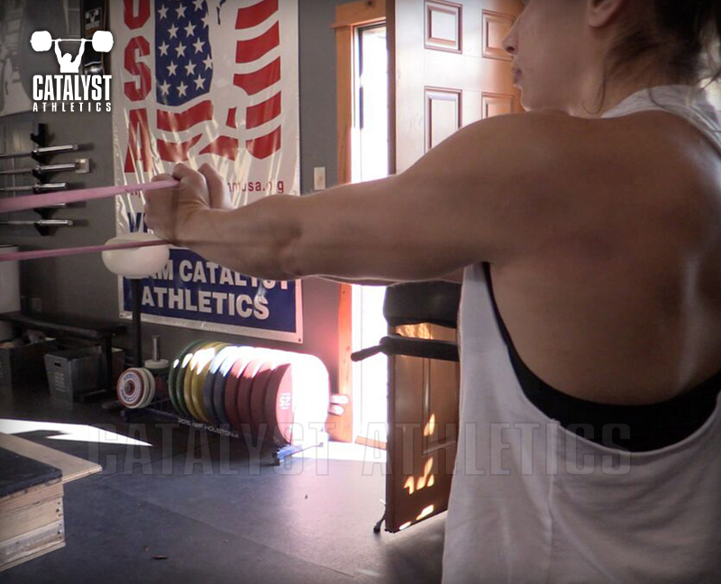 The shoulder is the joint that possesses the most range of motion and thus is constantly at risk for injury. When stabilizing the shoulder, four muscles (the supraspinatus, infraspinatus, teres minor and subscapularis) work to keep the shoulder joint in place. All of these muscles are not normally trained when lifting shoulders, but their importance cannot be forgotten. The following exercises can be used before every upper-body lifting day to warm up the back and shoulders and as prehab to prevent any shoulder injury from occurring. Perform the following exercises using a band that you can control through 15 repetitions while focusing on the eccentric portion of the movement with a 3 second pause at the top of the movement: Row, Reverse Fly, Pulldown, 90-90, Scaption (raising arms up at 45-degree angle) and Flexion (raising arms straight up).