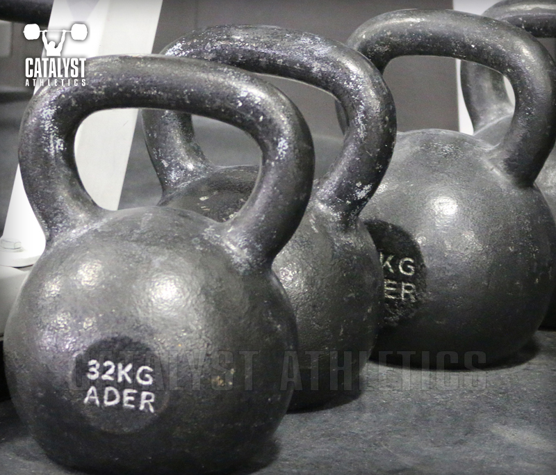 Although we all have a love affair with the barbell, it has its limitations. It has two perfectly weighted sides, making it easy to hide any muscle imbalances. Due to easy compensation against the bar, it is easy to make up for the instability in the glenohumeral joint of the left shoulder, say, by increasing the pull on the right shoulder, without making it look too obvious. If you come to me and say, “Hey coach, I feel pain after I snatch in the right shoulder; can you watch what I am doing wrong?”, you can do 20 overhead squats with a barbell, and I might begin to notice a slight scapula winging on the left shoulder, maybe at your 19th repetition at 80 percent. I might say, “Hmm that’s interesting, let’s see some more.” Or I can have you do a unilateral overhead squat with a kettlebell, and I will notice scapula winging and instability, lumbar over-extension, thoracic tightness and upper trap over-use all in two light reps. With an easy and quick assessment of overload on the right shoulder, I can now quickly see the compensation on the right shoulder for the left instability, and I can predict an overuse injury in the near future. The kettlebell reveals weaknesses quicker. Now, instead of sending you off to rest and stretch your right shoulder for a week, I can send you home with a plan to tackle the real problem: the left shoulder instability.