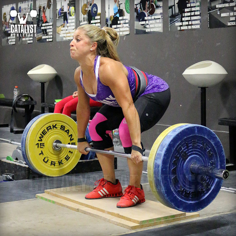 With that being said, I would focus on exercises that will strengthen your lower back, train some stamina for maintaining extension, and strengthen the proper first pull position. The top of the list for this would be the floating snatch deadlift; you can do floating snatch pulls as well, but because you’ll be thinking about extending quickly at the top, you’re less likely to focus on locking in your position and maintaining tension in the bottom, which is our primary goal. The next best would be snatch segment deadlifts or pulls with 3-second pauses at 1 inch off the floor and at the knee.
