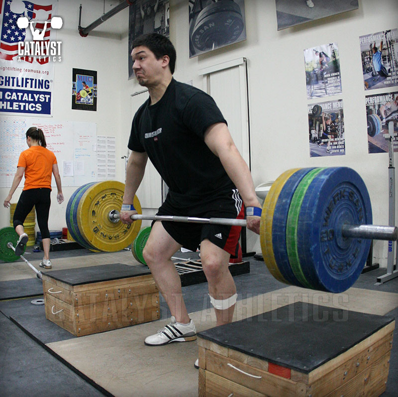 Greg Says: First, I want to take a moment on the heels rising prior to contact issue. While just about everyone agrees that it’s optimal to remain flat-footed basically as long as possible in the pull, there are different reasons for the heels rising earlier and as a consequence, different corrections, and at least as importantly, different levels of necessity for correction (down to and including none at all). The first thing to understand here is that being on the balls of the foot doesn’t necessarily mean your balance has shifted forward to that point. If you’re moving at a certain threshold of speed, that pressure and the line of gravity do not have to be aligned like they do if you’re in a static position. (See this video for a good explanation of this.) Also, the heels do not come off the floor because of bar contact—they rise because of the natural dorsiflexion of the ankles during a drive of the legs against the ground, the same way the heels naturally rise during a jump.