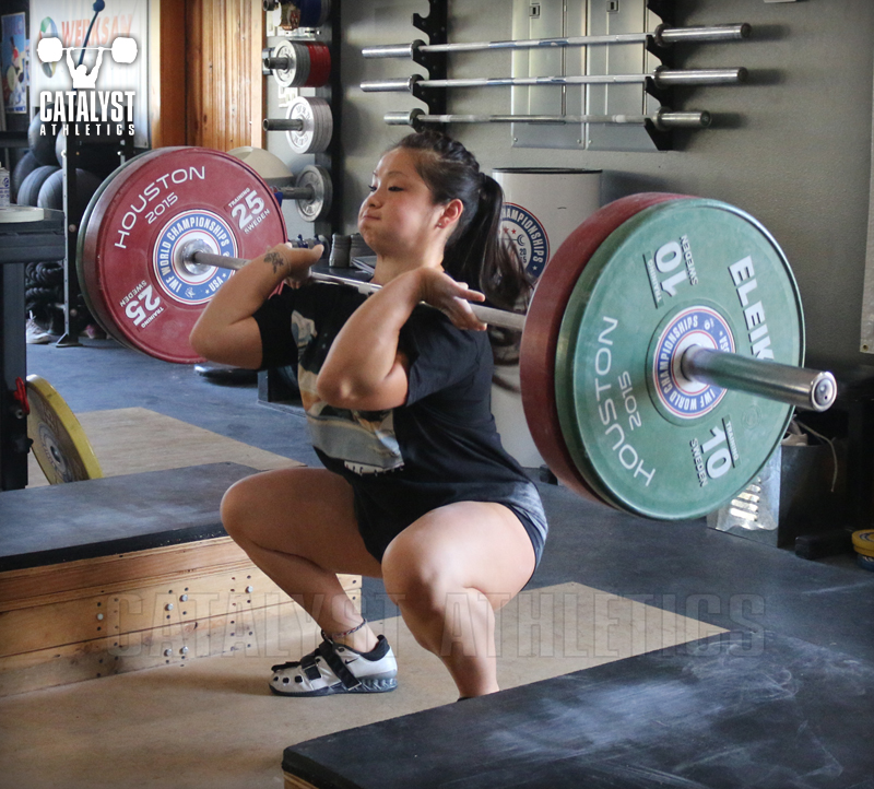 A.) Snatch OTM 80%x1, 82.5%x1, 85%x1 Rest 2 minutes 82.5%x1, 85%x1, 82.5%x1 Rest 2 minutes 82.5%x1, 85%x1 87.5%x1 Rest 2 minutes 85%x1, 87.5%x1 85%x1 Rest 2 minutes 85%x1, 87.5%x1, 90%x1 B.) Block Snatch Pull (90%)5 (95%)4 (100%3)4 C.) Back Squat (70%)5 (75%4)2 (80%3)3 |