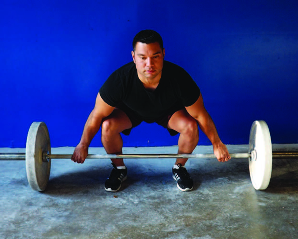 If you’re not already using the power position, I have hopefully now convinced you to do so. The most efficient way to learn this great tool is to build into it with progressions. Start with an empty bar, not a PVC pipe or dowel rod, as the bar will have just a bit of resistance to let you feel the movement. It isn’t necessary to belabor the proper progressions in this article, which is certainly the method used in my seminars, as I would need more space and illustrations. However, in a short and concise manner, I can recommend to start with the posture associated with the power position. From this position, with straight arms, jump the bar up from the thighs and into the receiving position. In the snatch, if you lock out overhead simultaneously as you land on your feet, you’ll get a sense of the effectiveness of this technique. In the clean, rack the bar on the shoulders with elbows pointing as straight forward as possible at the same time you land, which will also result in the same feeling. Reset and repeat several more times until you feel consistent. Then try it from the hang position. Execute the same thing, but after you hit any hang position, making sure to return to the power position before actually jumping and receiving the bar. After several reps and sets of consistency, you can then try lifting from the ground.