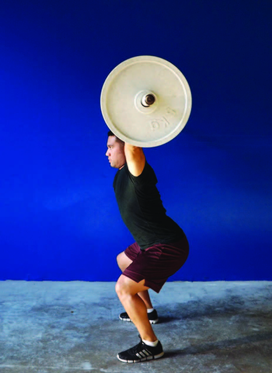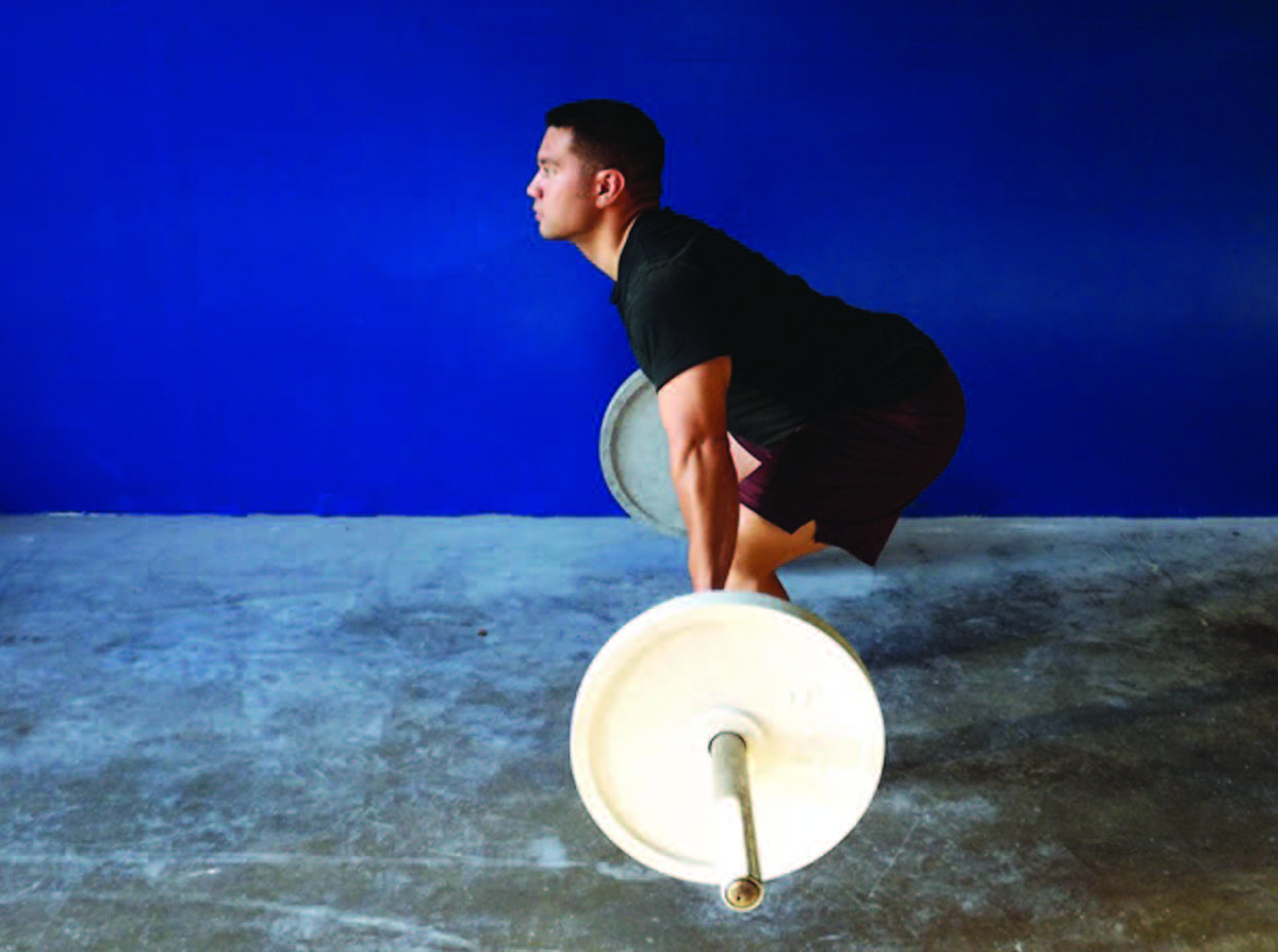 As noted above, the power position places the lifter in the best possible position to conduct the second pull, also known as the triple joint extension. If the lifter doesn’t use the power position, they will more than likely be “arm pulling” [PHOTO 4], or bending the arms too soon while still bent over. This puts the bar forward. Try jumping or conducting the second pull when the bar is forward.