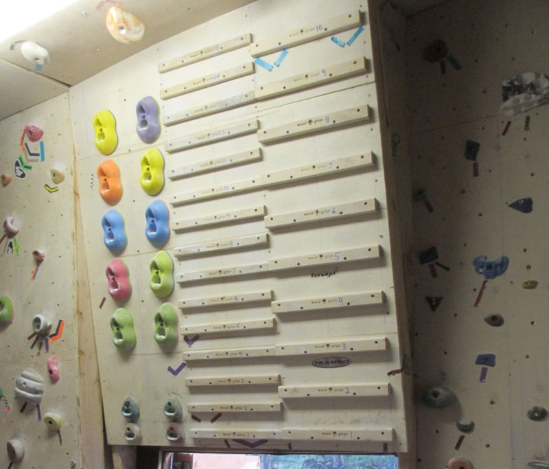 Beginner (5.11+) Match hands on middle rung, and climb as you would a ladder, using larger rungs. Repeat five times maxi¬mum.