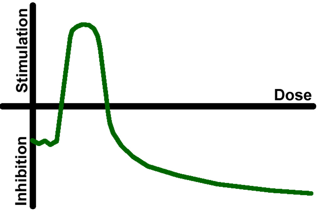 Hormesis (above) is characterized by a graphical sign change as one moves