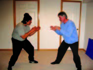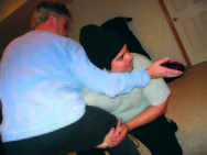 I have been in many classes that worked like that. A good example of this was once when I first started studying submission grappling I was in a class where we learned three techniques back to back, with the idea of “chaining” them together into a series of attacks: the Kimura from guard, the guillotine and a crucifix-type thing. We worked on the techniques individually, paying strict attention to all the details of setting them up and getting into them. Then the instructor said, “Okay, you got it, let’s roll.” Nowhere was there any instruction on how to get from one to another. So, like the good student I am, I asked: “What do I do with my hips? How do I transition to a hip-bump from the guillotine to get to the crucifix? And how am I supposed to figure all this out while some testosterone-laden gi-wearing monkey is trying to wrench my arm out of its socket?” All the instructor said was: “Welcome to the food chain.”