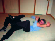 If you’re paying attention to the sequences of photos above, you’ll notice that the solo series of movements – while similar to the sequence to photos showing the practical application – are not the same. This is on purpose. I am a BIG believer in the training idea of stimulation vs. simulation. My goal is to ingrain (whatever) the series of movements into my neurological memory – so that when I find myself in a similar spot, I can “move without thinking,” increasing my flow, while in, and during, the “kinetic chain.” It is NOT to simulate the actual grappling encounter (which couldn’t be done anyway, as I would be practicing in a void, without a partner). Simulation in this case would be “chain wrestling,” and while there is a place for that kind of practice in a submission athletes’ toolbox, I think you’ll find (as I did) that in the hunt for submission you’ll lose that feeling of flow, because every submission is an ending, not a transition point to a new beginning.