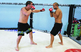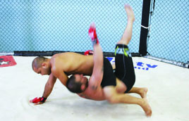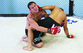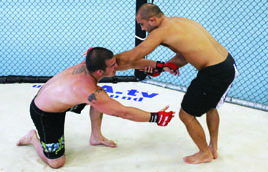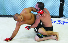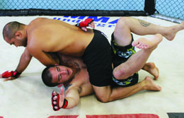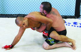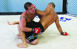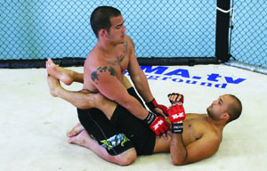 I’ve seen many excellent jiu-jitsu practitioners forget about submissions and sweeps when they find themselves in the bottom guard position in MMA competition. Instead of working their jiu-jitsu, they throw an assortment of strikes in an attempt to knock their opponent out. It wouldn’t be so bad if they used strikes to help set up submissions, but often times they don’t. They simply get comfortable striking from their backs. Unless you land a strike just right or get extremely lucky and manage to open a cut, you generally aren’t going to end a fight with strikes while lying on your back. You can irritate your opponent and you can force movement with strikes, but usually the only way you can end a fight from the bottom guard position is with a submission. For this reason, you should think of the bottom guard in straight jiu-jitsu terms. You have to tailor your jiu-jitsu to deal with incoming strikes, but your goals on the bottom should be purely jiu-jitsu oriented. The three goals you want to work for are a submission, a sweep, or an escape back to your feet. It is important to focus on all three, not just submissions. If you’re up against a good ground and pound fighter who is a master at slipping out of submissions, he is going to make you pay every time a submission attempt fails. If you don’t use the movement your submission attempts generate to set up a sweep or an escape, you can quickly wind up a bloody mess.