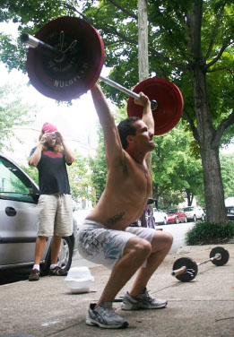 To recap: Jake gained 5lbs in his Press, 25lbs in his Clean, 30lbs in his Snatch, and 20lbs in the weighted pull-up. On top of all this he also gained 9lbs in 5 weeks. Not bad. Brandon gained 6lbs of mass. He added 10lbs to his back squat and 5lbs to his Deadlift without training those movements. He added 10lbs to his Press, a huge 55lbs to his Clean, 20lbs to his Snatch, and 20lbs to his Weighted Pull-up. Most interesting to him is that he increased his Overhead Squat to 170lbs and his consecutive unweighted pull-ups went from 20 to 42. This was so impressive that some of us are now using both the rep scheme and load increasing from the strength cycle of the mass gain program to improve consecutive pull-ups.