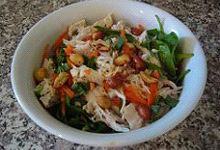 Zone Blocks: 1oz chicken = 1 block protein, 1.5 block fat; ½ cup carrot = 1 block carb; 2 cup spinach = .5 block carb; 6 peanuts = 1 block fat