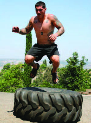 Leo is a former Marine, age 31, about 5’ 9” and 175 lbs. He first came to me about two years ago with a solid training background and a good fitness base. At the time, he was preparing primarily for Muy Thai fighting, so our training was geared specifically for that. I used a mix of basic strength training on a simple progression mixed with relatively brief CrossFit-style metabolic work.