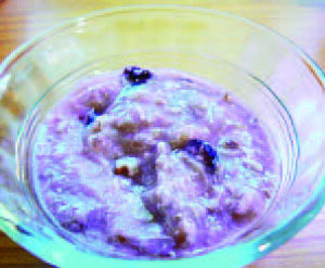 This month's breakfast takes a bit of time to simmer, but otherwise, the prep time is very short. It tastes a bit like oatmeal with fruit. Combine with some protein for a complete meal.