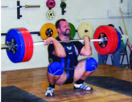 And then, if the athlete is persistent enough to find a competent coach, the physical challenges begin to surface. For most former powerlifters, flexibility is a problem. The usual culprit areas are the wrists, elbows, shoulders, hip flexors, and ankles. Because of the relatively short range of motion in the power lifts, the muscles and connective tissue often develop in a way that creates stiffness and, in some cases, prohibitive or “muscle-bound” lack of flexibility. The longer the athlete has spent intensely training the bench press and powerlifting-style squats, the more limited the flexibility is likely to be. I had two factors that benefited me when I converted: a) I was only 18 and had not lost my ankle flexibility yet and b) I was not heavily muscled in the upper body. This second factor worked against me as a powerlifter because I was a weak bench presser. But in weightlifting, it was a positive attribute because I had solid lock-out in the elbows and I was able to fix the bar comfortably over my ears when performing snatches or jerks. Any powerlifter who has a severe lack of flexibility prior to beginning weightlifting training will have to begin with an extensive stretching program. All of the stretching that is performed in this program should be directed towards attaining the positions of the snatch and clean and jerk. Generally speaking, pre-workout stretching should be more ballistic and post-workout stretching should be more static. The positives and negatives of both types of stretching are outlined in Greg Everett’s Olympic Weightlifting: A Complete Guide for Athletes & Coaches. It is worth mentioning that I did a large amount of intense pre-workout static stretching in my early career, and I suffered frequent muscle pulls and partial tears during training. These injuries became much less frequent when I abandoned pre-workout static stretching and moved to more ballistic, movement-centered stretching.