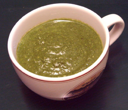 Boil the spinach with the water, 10 minutes or until soft. Meanwhile, use a food processor or blender to make a paste of the onion, garlic, and ginger. Set this paste aside.