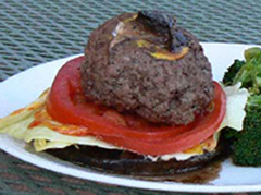 Portabella mushrooms can make good substitutes for hamburger buns. Here is a simple hamburger meal Rochelle and I whipped up in our cabin on our recent honeymoon. We just used one mushroom for the bottom "bun", but you could use two if you'd like it to look a bit more traditional.