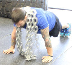 • Start with four chains around the athletes neck hang freely to the ground (use chains weight appropriate with athletes strength level