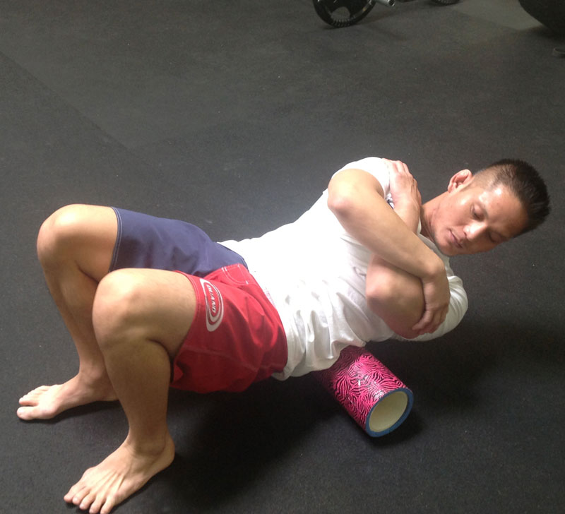 Start with a foam roller. For some grapplers, a foam roller may not be enough to start breaking up the restricted tissues. In this case, use a PVC pipe or double lacrosse balls. For two to three minutes, foam roll the following areas: