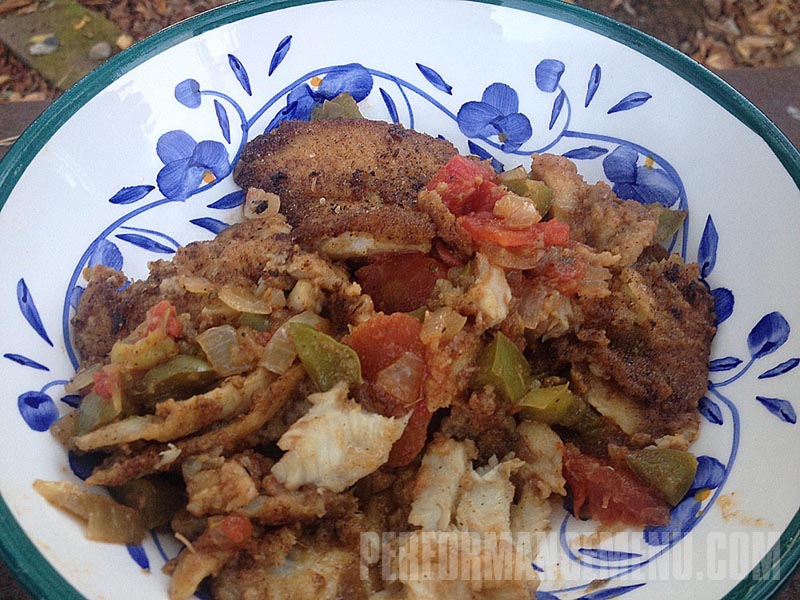 Add the onions, peppers, and tomatoes to the skillet. (There should still be a bit of oil in skillet--if not, add a few teaspoons.) Stir and cook the vegetables until the onions begin to soften, about three minutes. Add remaining juice from the lemon, plus the remaining Cuban seasoning (1 teaspoon) and the wine. Reduce heat to low. Place the fillets back in skillet over the vegetables and cover. Stew for five minutes to allow the fish to heat and absorb flavors from the vegetables and juices. Serve you’re your choice of rice and garnish with parsley, if desired.
