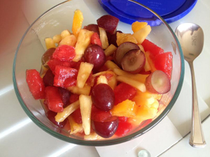Wash and chop the fruit. Mix in a large bowl, and then transfer to containers for the week.